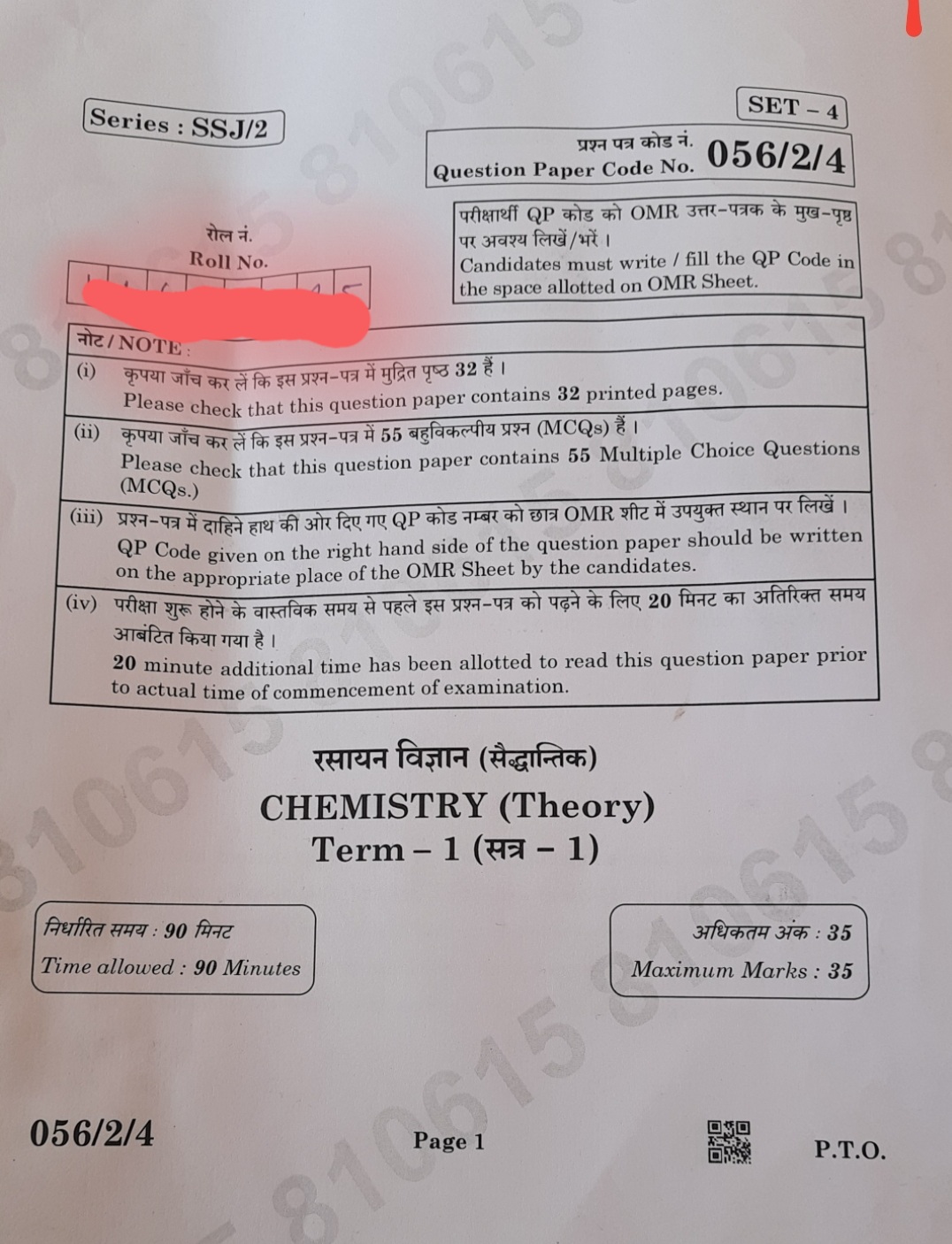 14.12.2021 Download pdf of question paper and view possible answer key of Class 12 Chemistry Term 1 2021-22 (Bilingual -हिन्दी and English )