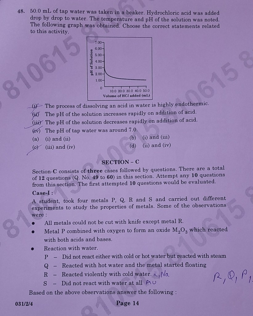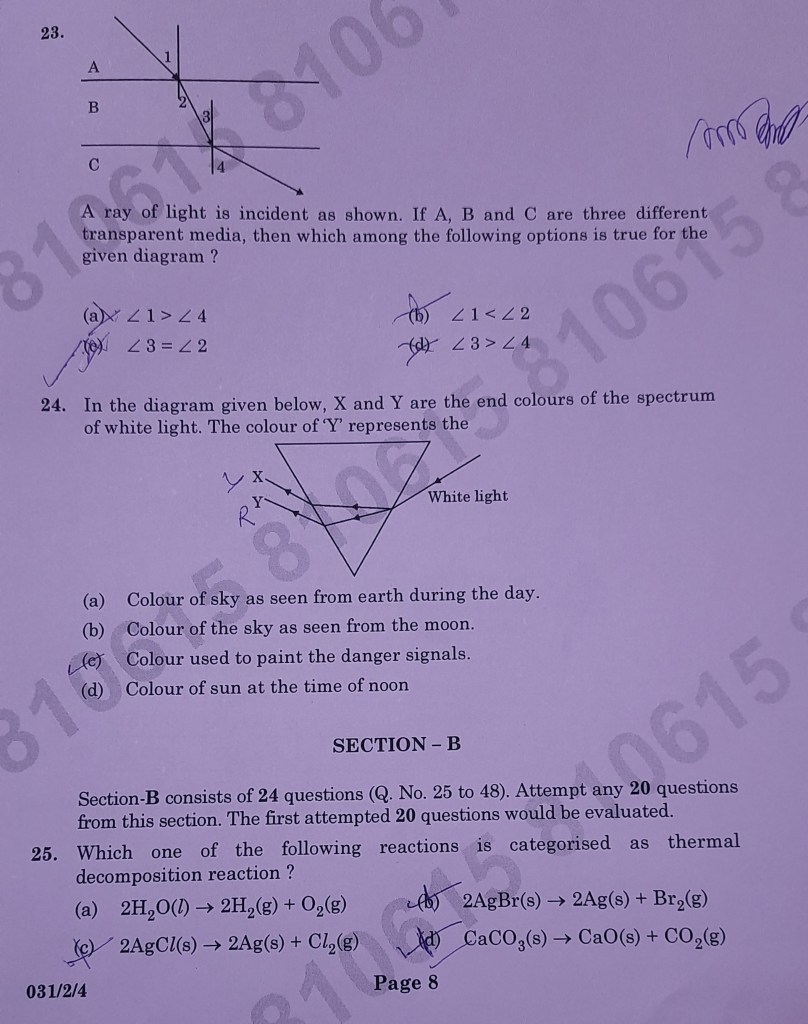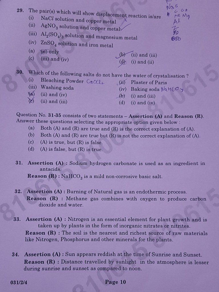 Today’s CBSE (India) Class 10 Science Term -1 Question Paper