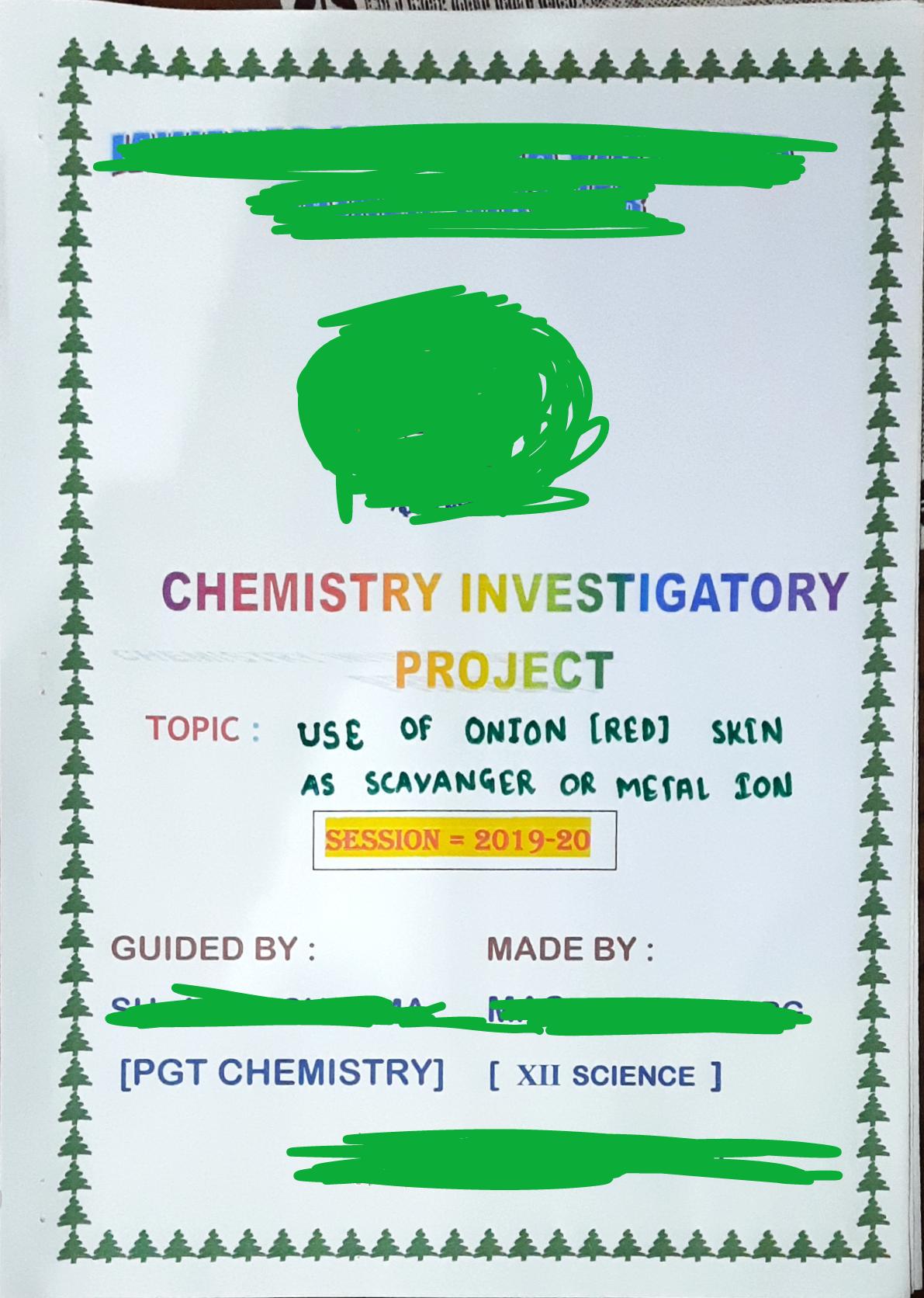 कक्षा 12वीं और 11वीं के रसायन विज्ञान के छात्रों के लिए खोजी परियोजना।