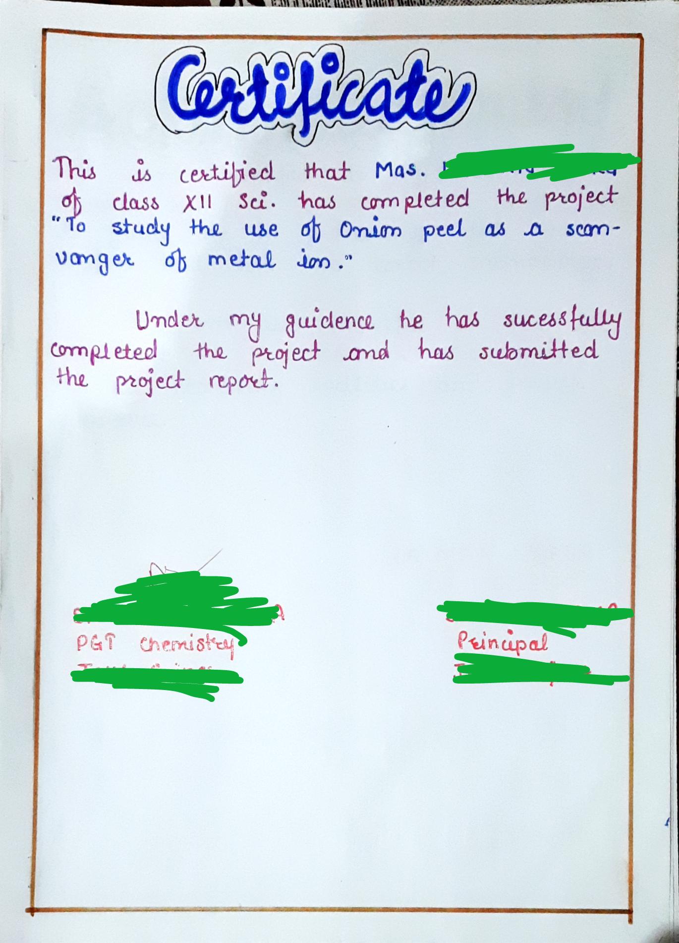 Investigatory Project Class 12th and 11th Chemistry Students